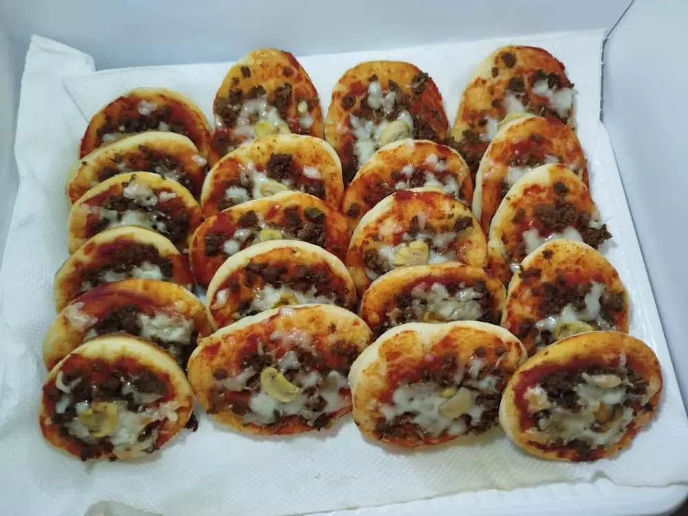 Composition : fromage, viande hachée, olive, sauce tomate, champignons, lait